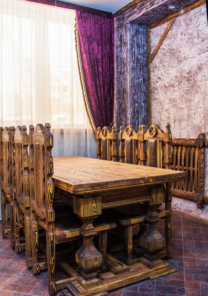 - Стул Э0102-01 выполнен полностью из массива сосны с мягким основанием и спинкой из натуральной кожи. Стул выполнен в готическом стиле, подойдет для загородного кафе, ресторана, усадьбы, дома отдыха и гостиниц. Все детали изделия выкрашены декоративной пропиткой на основе натурального воска. В изготовлении стульев используются шиповые соединения и склейка щитов. Прочность шиповых соединений является основным фактором, определяющим их качество. Гарантируем долговечность и прочность на 100%. Также можете найти и выбрать другие модели стола на нашем сайте.