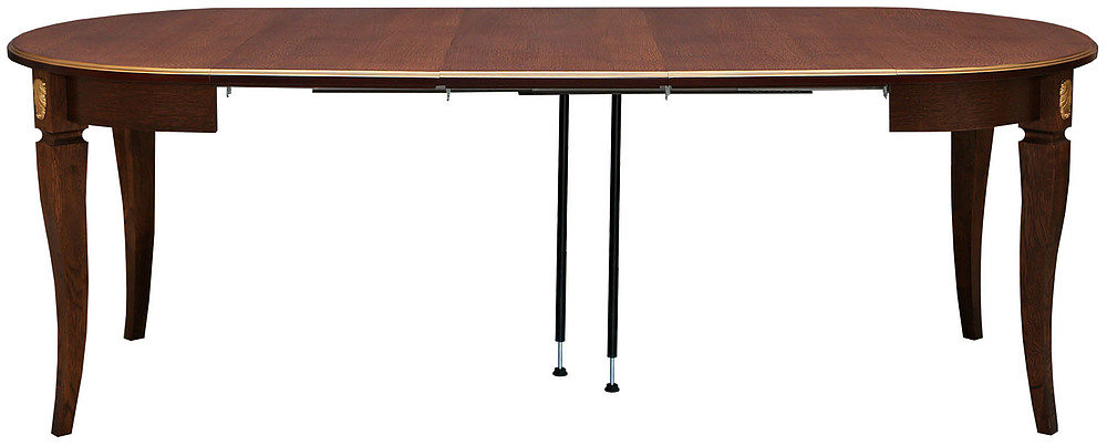 Благодаря наличию нескольких вкладышей ширину обеденного стола "Милана 14/1А" можно варьировать в зависимости от того насколько большая компания должна за ним расположиться.В сложенном виде не займёт много места.Материалом изготовления служат массив и шпон дуба.Производится в следующих вариантах крашения : черешня, черешня с золочением, черешня с серебром, слоновая кость,слоновая кость с серебром, слоновая кость с золочением, Р-43, Р-43 с патинированием,Р-43, венге, Р-46, античная бронза, табак, лесной орех.