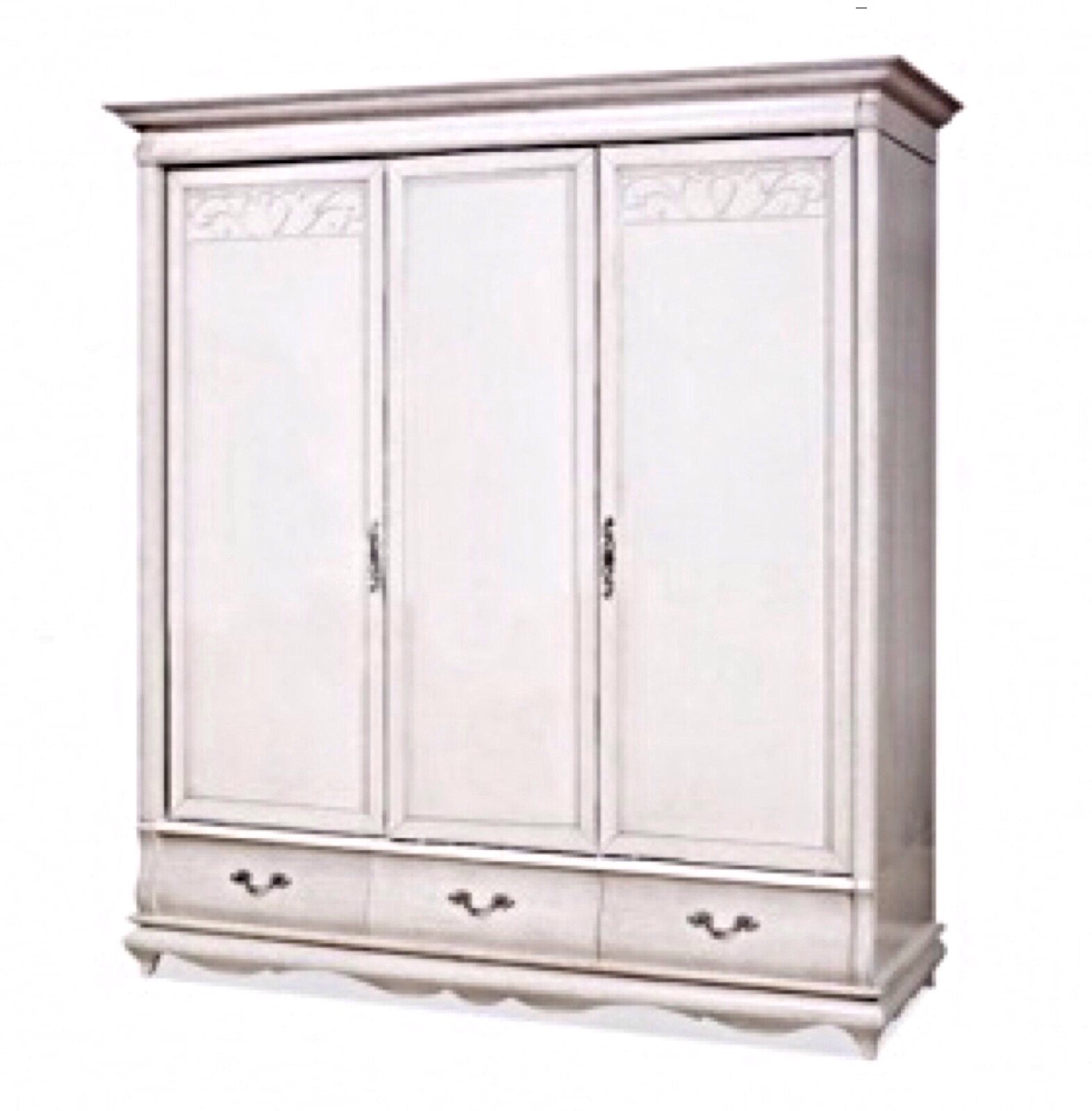 Шкаф трехдверный "Оскар" белая эмаль с темной патиной без зеркал