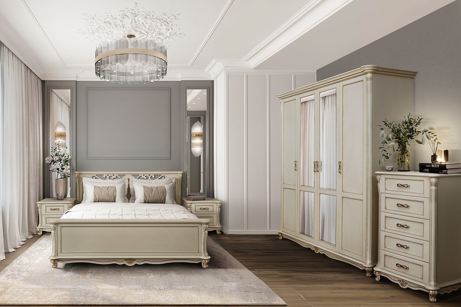 Спальня "Алези-6" слоновая кость с золочением БЕСПЛАТНЫЕ ДОСТАВКА , ПОДЪЕМ И СБОРКА В ПОДАРОК 528 500 ₽