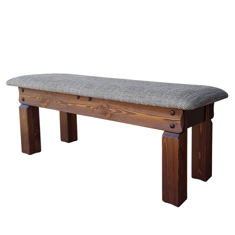 Лавка «Добряк» (ткань) из серии «Добряк» принадлежит к направлению мебели под старину, выполненной из массива сосны. Эта коллекция выдержана в стиле кантри и передаёт атмосферу традиционного русского дома с его основательностью и теплом натурального дерева. Брашированная поверхность с характерным рельефом подчёркивает естественный рисунок древесины, а тонирование в цвете «Старый орех» придаёт изделию благородный состаренный облик. Лавка органично смотрится на кухне, в прихожей, столовой или на веранде загородного дома.