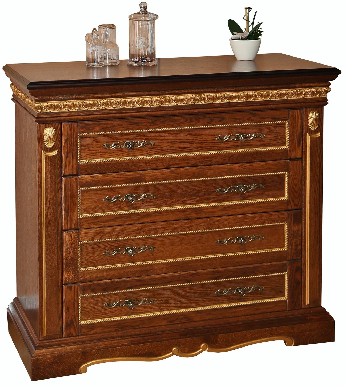Тумба туалетная "Милана" широкая мореный дуб с золочением