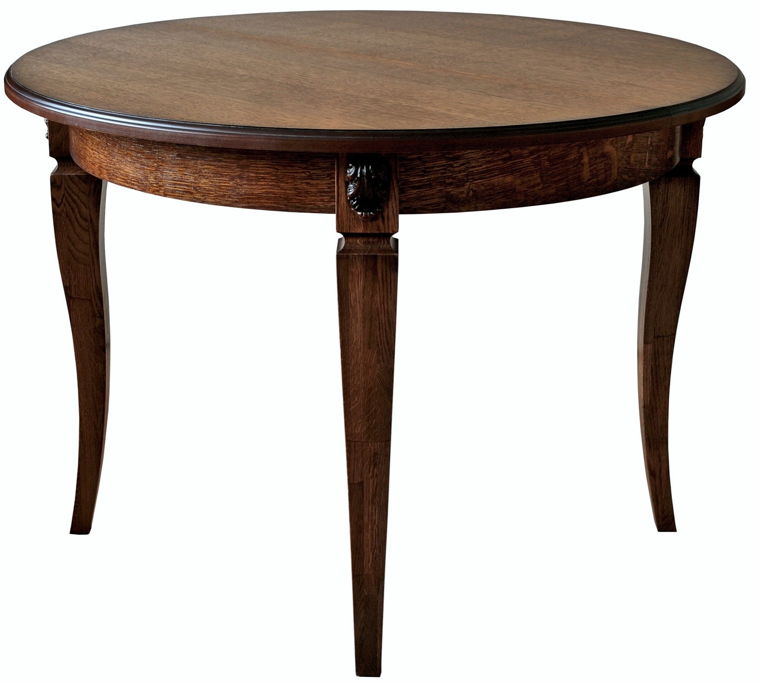 Компактный обеденный стол "Милана 12 А" гармонично впишется в небольшую столовую и гостиную.В разложенном виде рассчитан на компанию не более шести человек.Выполнен из древесины и шпона дуба.Механизм трансформации производства Германии.Производится в следующих вариантах крашения : черешня, черешня с золочением, черешня с серебром, слоновая кость,слоновая кость с серебром, слоновая кость с золочением, Р-43, Р-43 с патинированием,Р-43, венге, Р-46, античная бронза, табак, лесной орех.