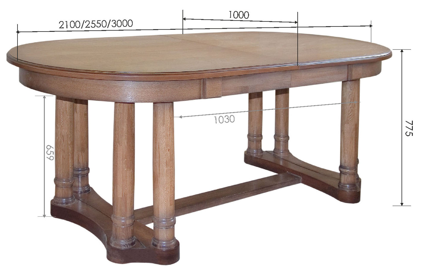 Размер - Глубина: 1000 мм Высота: 775 мм Ширина: 2100/3000 мм(раскладной)