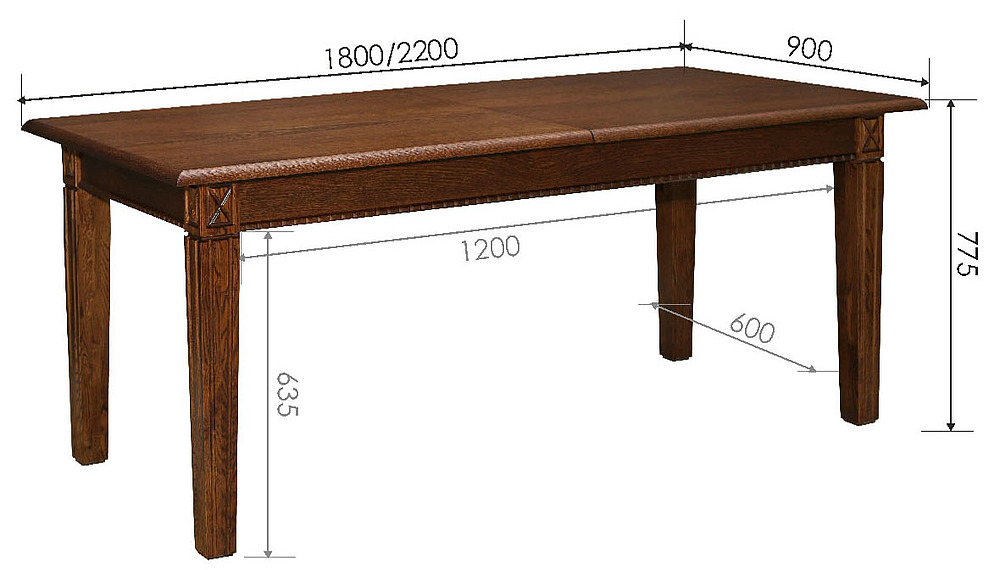 Размер - Глубина: 900 мм Высота: 775 мм Ширина: 1800/2200 мм(раскладной)