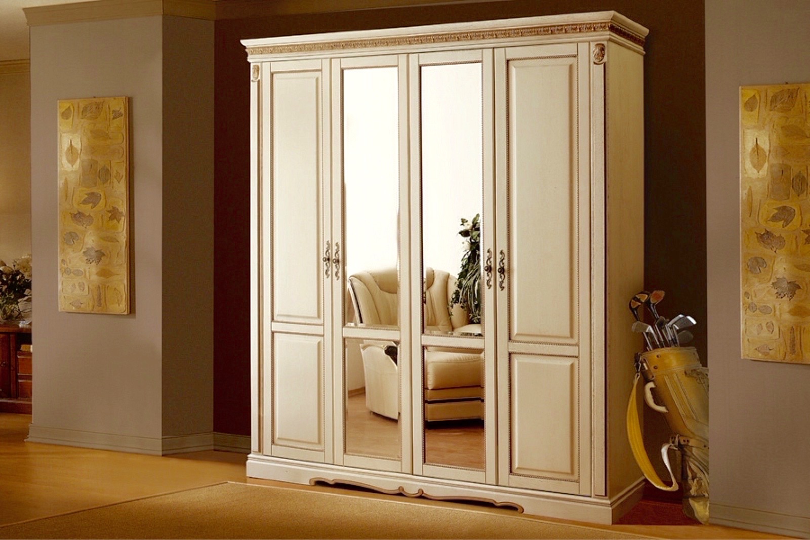 Шкаф четырехдверный "Милана" слоновая кость с золочением