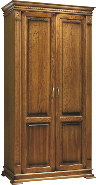 Двухдверный шкаф Верди станет центром внимания в вашей гостиной, спальне или библиотеке. Шкаф выполнен из экологически чистых природных материалов : массива и шпона дуба, которые совершенно безопасны для здоровья. Против образования трещин и царапин шкаф покрыт специальным лаком. Фасад шкафа декорирован филенкой.
