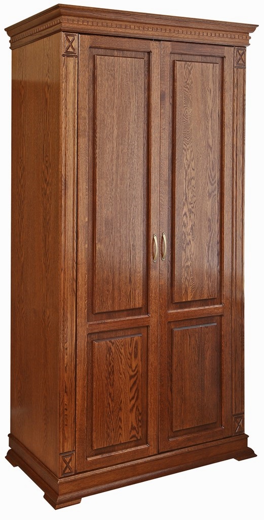 Двухдверный шкаф Верди станет центром внимания в вашей гостиной, спальне или библиотеке. Шкаф выполнен из экологически чистых природных материалов : массива и шпона дуба, которые совершенно безопасны для здоровья. Против образования трещин и царапин шкаф покрыт специальным лаком. Фасад шкафа декорирован филенкой.