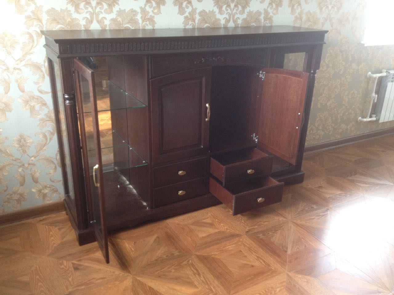 Шкафы - витрины серии "Паола" предназначены для гостиных и столовых в стиле "классика" или "барокко". Резные элементы, тонкое стекло, а так же красивая фурнитура подчеркнут всю роскошь интерьера . Шкафы - витрины производятся в крашениях "розовый пепел" и "горячий шоколад".Приблизительный вес : 112 кг