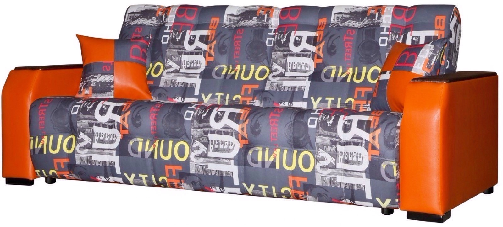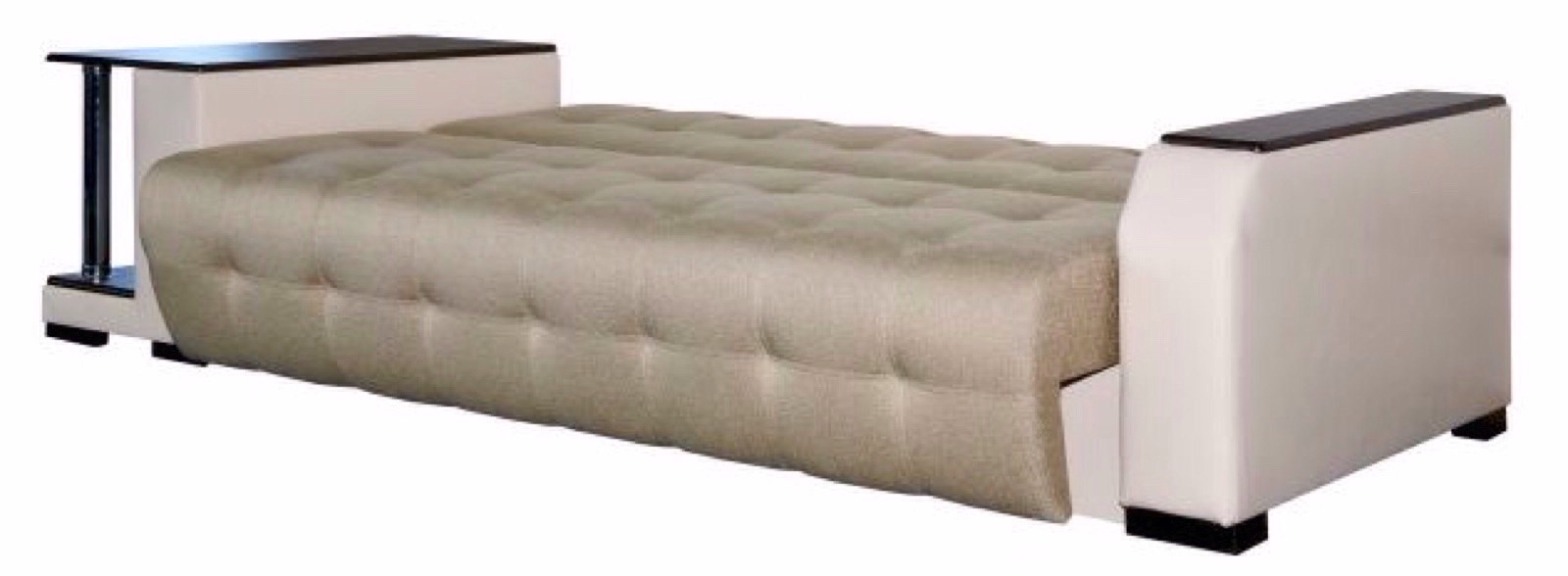 - Боковины : коробчатой конструкции с декоративным подлокотникам и приставным столиком .