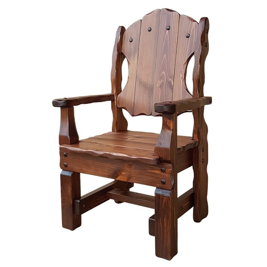 Кресло, выполненное в старинном стиле, способно стать одной из главных «изюминок», которая сможет привнести в оформление комнаты особую атмосферу. Высокое качество исполнения и мастерство, в сочетании с использованием натурального дерева, служат основой для создания прочной и по своему очень красивой мебели. Кресло Добряк легко представить как в интерьере старинной таверны, так в современном загородном доме или квартире. Нарочитая простота дизайна позволяет показать всю красоту и изящество рисунка сосны. Всем своим внешним видом это кресло говорит об основательности и долговечности изделия.Требование к сборке : сборка не требуется