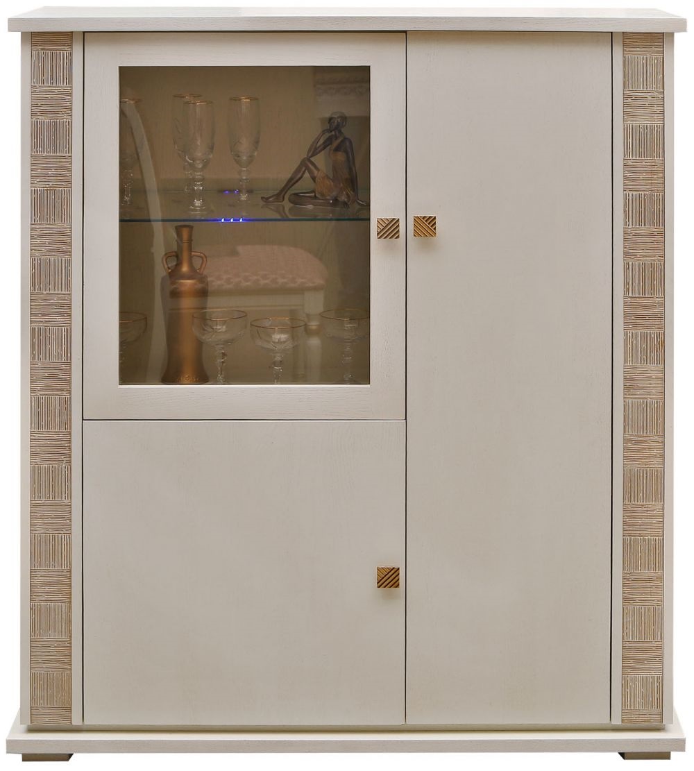 Тумба витрина "Тунис" слоновая кость с серебром