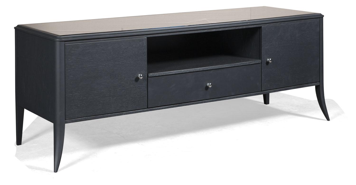 "Тумба для ТВ из коллекции Тиффани БМ-2423 станет достойным дополнением интерьера гостиной. Тумба подходит для телевизора, приставок и DVD. Гармонично сочетается с тумбами из коллекции и оригинальным шкафом-витриной. Мебель изготовлена из массива дуба с элементами из дубового шпона. Материал обладает высокой износостойкостью и прочностью. Срок службы древесины очень долгий. Для дополнительной защиты и сохранения цвета мебель покрыта полиуретановым лаком. Крашение "антрацит" подойдет для стильного современного интерьера. Мебель выглядит дорого и изящно. Легкости конструкции добавляют изогнутые ножки и минималистичная фурнитура.